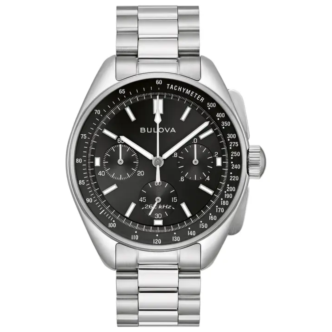 Features: A movement featuring a 3-pronged quartz crystal with a frequency of 262 kHz that is 8 times greater than standard quartz, leading to an accuracy of seconds a year.